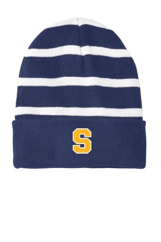 • This fully lined beanie keeps the chill at bay and coordinates with our Striped Arm Socks (STA03) sold separately. • 100% acrylic • 89/9/2 acrylic/poly/metallic (Sport Blue/Silver, Team Navy/Silver) • 100% polyester fleece lining • All colors have black fleece lining except True Royal, Maroon, Purple, Deep Orange and Sport Blue which have grey fleece lining