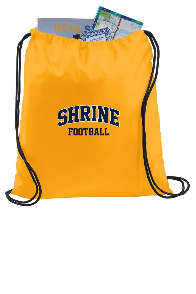 • A basic cinch pack at a very friendly price. Lightweight and easy to wear over your shoulder thanks to adjustable-length drawcord straps. • 210 denier polyester • Drawcord closures • Dimensions: 16.5"h x 14.5"w; Approx. 610 cubic inches • Note: Bags not intended for use by children 12 and under. Includes a California Prop 65 and social responsibility hangtag.